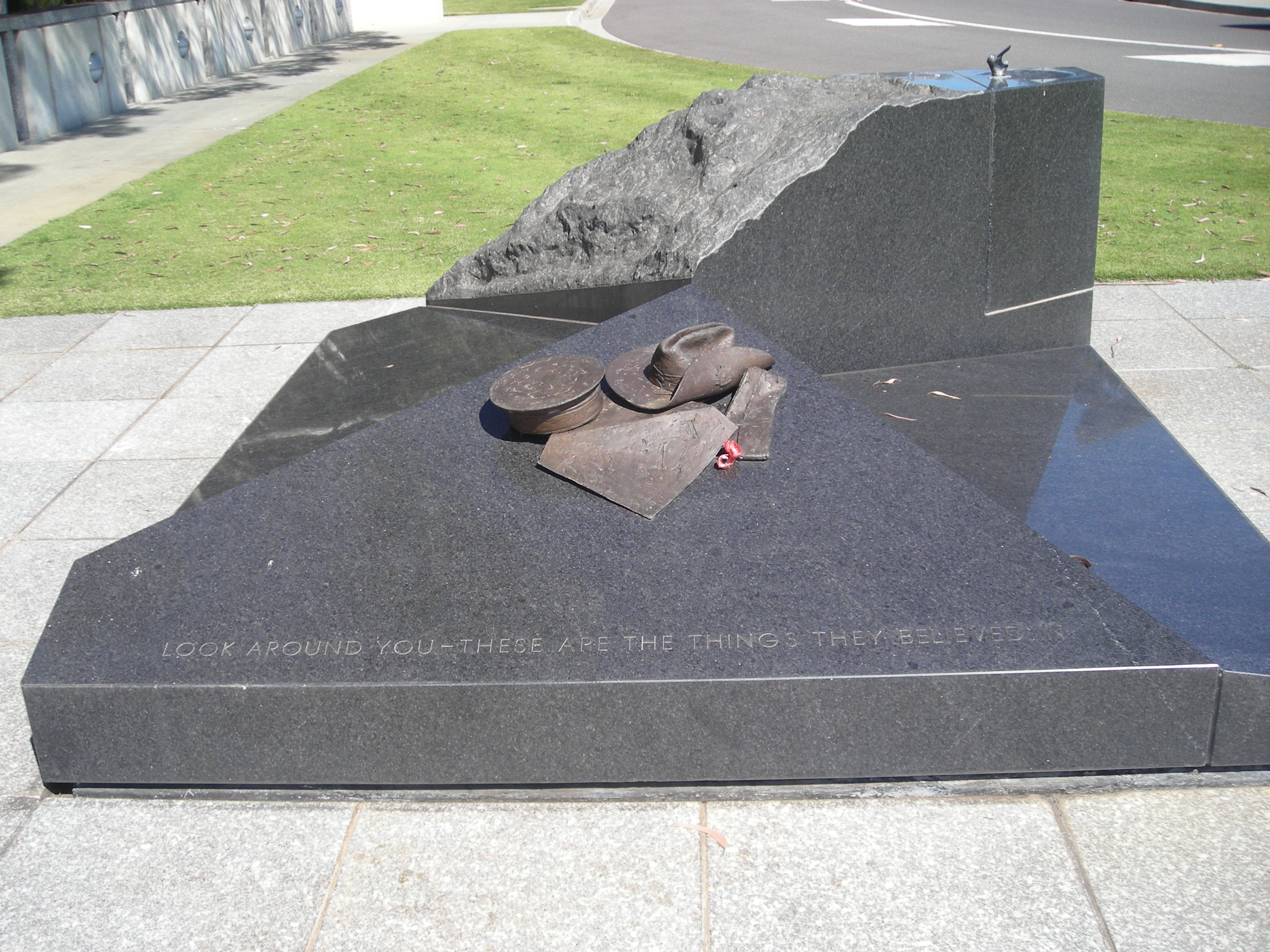 This slab supports a drinking fountain next to the new Parliament House in Canberra. Frank was commissioned by the R.S.L to write a piece for the memorial that would grace the new Parliamentary precinct.